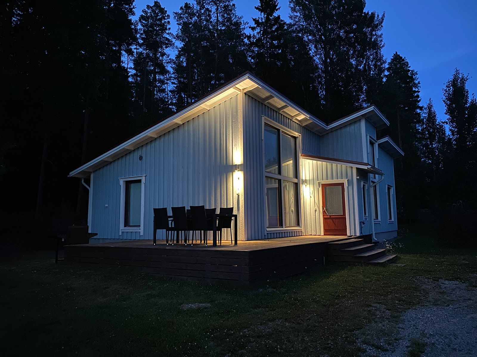 Talossa on makuuhuoneen lisäksi olohuone ja ruokailutila avokeittiöllä. Talo on moderni, joten mm. juokseva vesi ja sisä-wc löytyvät. Tilaa on mukavasti neljälle-viidelle hengelle. Talossa on sähkösauna, pihalta löytyy hiiligrilli, olohuoneesta taulu-tv ja takahuoneesta pesukone. Keittiössä on perusvarustus: hella, uuni, mikro, vedenkeitin ja löytyy Nespresso-konekin. Makuuhuoneessa on parisänky, olohuoneessa sänky ja vuodesohva. Olohuoneessa on myös kodikas takka.